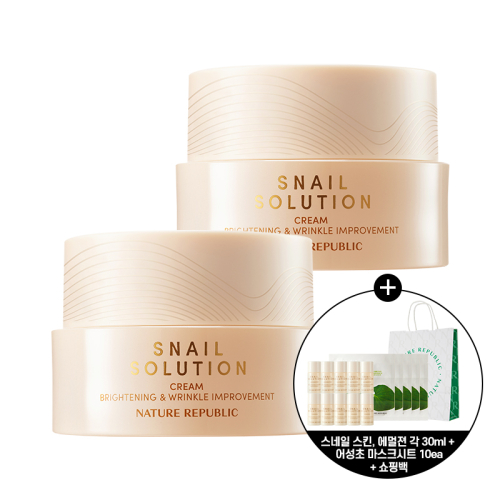 [2개] 스네일 솔루션 크림 (미백·주름개선) + 스네일 스킨 30ml,에멀전 30ml,어성초마스크5매