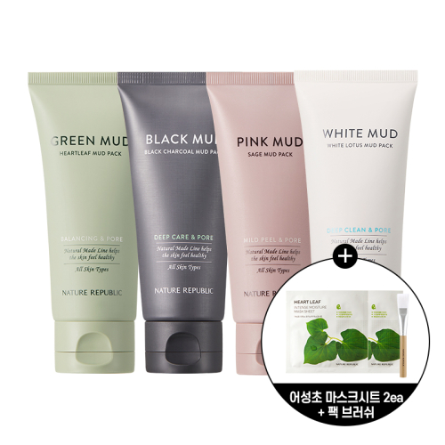 [골라담기] 내추럴 메이드 머드팩 4종 택2 (+뷰티툴팩브러쉬+어성초마스크 2매)