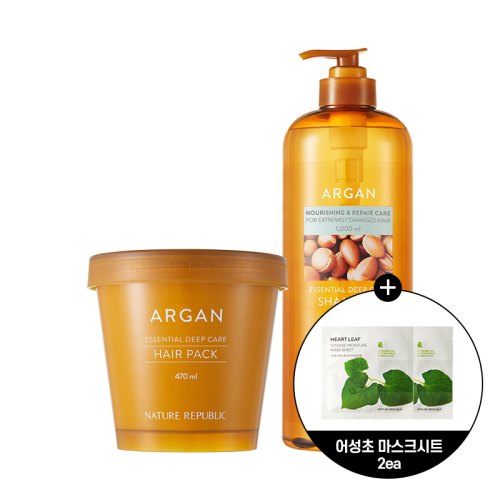 [대용량 2종]아르간 에센셜 딥케어 샴푸 + 헤어팩 (+어성초 마스크팩 3ea 증정)